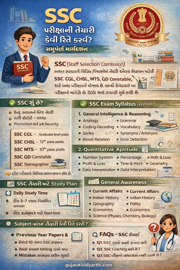 SSC પરીક્ષાની તૈયારી કેવી રીતે કરવી? સંપૂર્ણ માર્ગદર્શન (Gujarati Guide)